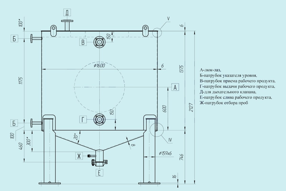 Резервуары вертикальные РВС-2 м3 комплектуются патрубками следующего назначения: